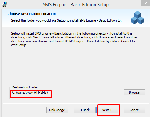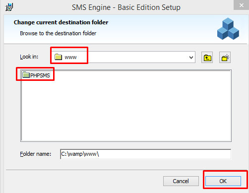 - Browse the path and save it inside “C:wampwwwPHPSMS”.