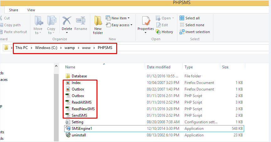 - Copy these files to the directory — “C:wampwwwPHPSMS”: