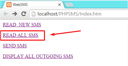 - In order to view all the incoming SMS that have been read, click on Read ALL SMS link.