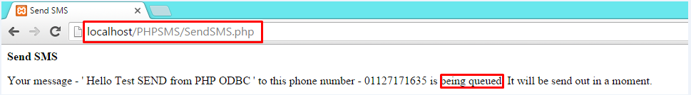 <html> <head> <title>Send SMS</title> </head> <body bgcolor="white" text="black" link="blue" vlink="purple" alink="red"> <p> <b>Send SMS </b><p> <?php /* ========================================================================== Copyright 2007 by MOBITEK System Sdn. Bhd. Acknowledgement: Mr. Mohd Najmi Bin Selamat (student of MULTIMEDIA UNIVERSITY MALAYSIA) has contributed to the development of this programme Terms and Conditions 1. License condition: you are allowed to use, modify, distribute, this PHP code for free 2. This source code is provided on "as-is" basis. No warranty nor support is provided on the use of the code 3. BY USING THIS CODE, YOU ASSUME ALL THE RISK AND RESPONSIBILITY 4. MOBITEK System Sdn. Bhd. EXPRESSLY DISCLAIMS ANY WARRANTIES 5. MOBITEK System Sdn. Bhd. SHALL NOT BE LIABLE TO YOU OR ANYONE ELSE FOR ANY LOSS OR DAMAGES WHATSOEVER ========================================================================== */ //the DSN is "SMSEngine5", please rename if your DSN is different //establish connection to Access database via ODBC $conn = odbc_connect('SMSEngine5','',''); if (!$conn) {exit("Connection Failed:" . odbc_errormsg() );} //queue outgoing SMS into Outbox table $sql="INSERT INTO Outbox (Message, Mobile, DateTimeQueue, SentStatus) VALUES ('$_POST[Message]','$_POST[Mobile]',date(),'P')"; $rs=odbc_exec($conn, $sql); echo "Your message - '" ." ". $_REQUEST["Message"] ." ". "' to this phone number - " ." ". $_REQUEST["Mobile"] ." ". "is being queued. It will be send out in a moment."; //close connection to database odbc_close($conn); ?> </body> </html>
