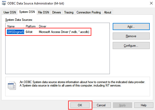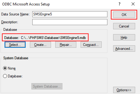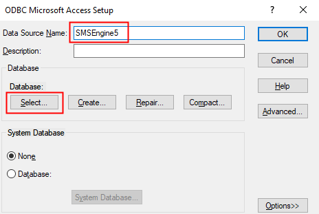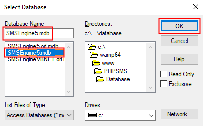 - Locate the directories of the database, select “SMSEngine5.mdb” database and click OK button.