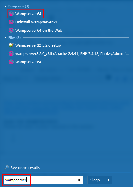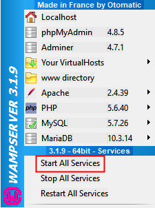 - Click start and search for your wamp server. Start wampserver3.1.9.