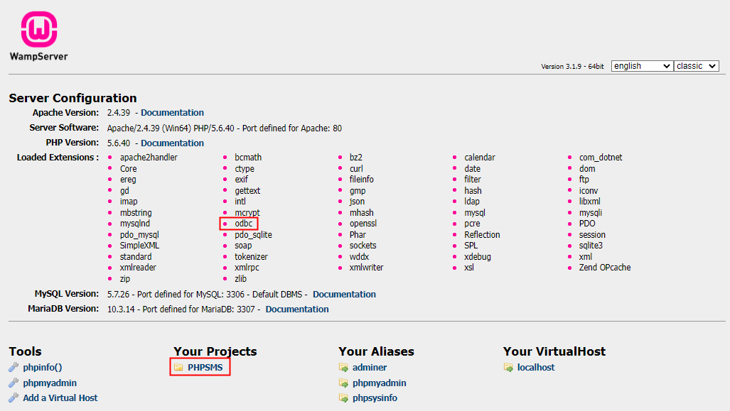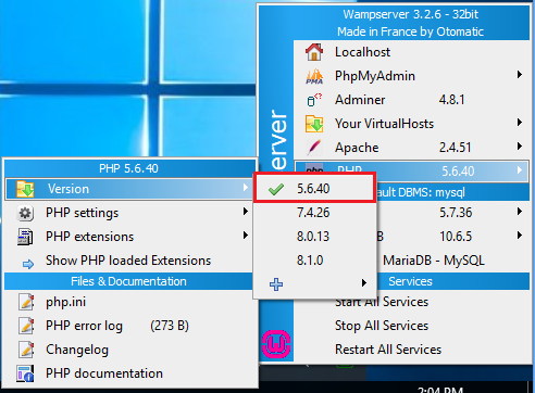 - WAMPSERVER 3.1.9 64-bit is using PHP version 7.x, change it to version 5.6.40. Hover to “PHP” -> “Version” -> “5.6.40”.