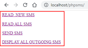 - Now, you can see all the 4 links which is linked to the 4 php code that you already copy in “C:/wamp/www/PHPSMS”.