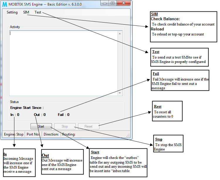 - To start the SMS Engine, click “Start” button.