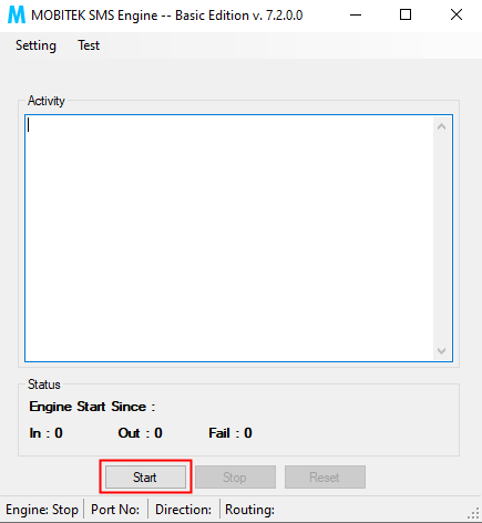 - Log: any error found in SMS Engine will be logged in text file and “Activity” box