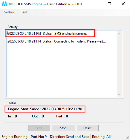 - If there are any errors, refer to the error log at “<Installed path>\MOBITEK\SMS Engine – Basic Edition\Log“.