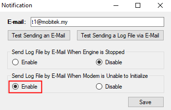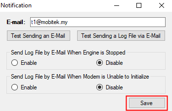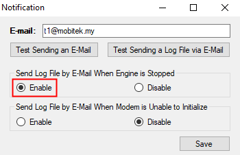 Notification is used to send the log file by e-mail in these 2 conditions: 1) when engine is stopped 2) when any modem is unable to initializeClick on “Notification” menu. |