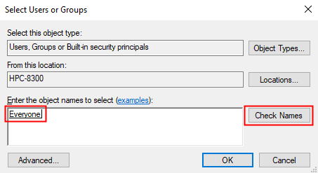- Select “Everyone” in the Group list, assign “Full control” to it.