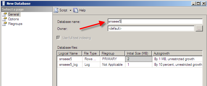 - For MS SQL database server, the sql script is “mssql-smsee6.sql”;