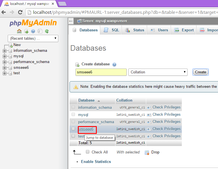 - For MySQL database server, the sql script is “mysql-smsee6.sql”.