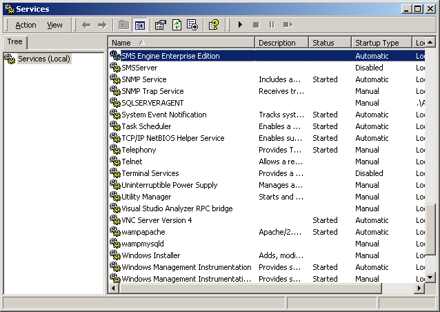 This will make sure that the SMS Engine – Enterprise Edition service is always running, and it will always attempt to initialise the GSM modem and to connect to the database.