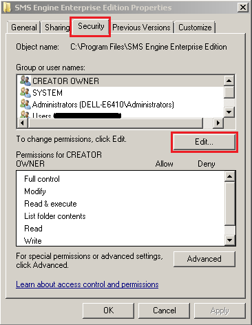 - version number of the SMS Engine – Enterprise Edition (right click on “C:Program FilesSMS Engine Enterprise EditionSMSSvc.exe”, select “Properties > Version tab”)