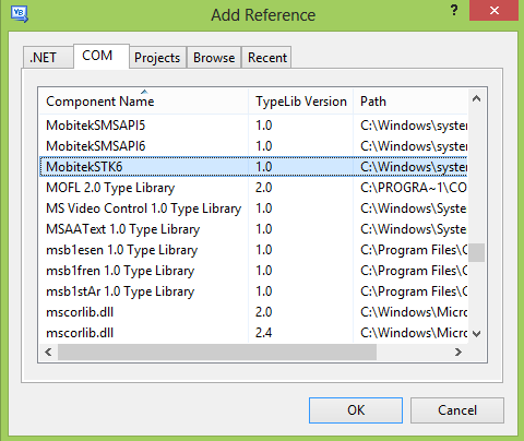 vMOBITEK = Modem.invoke(“Init”, 3); //NKL: please change the COM port number accordingly